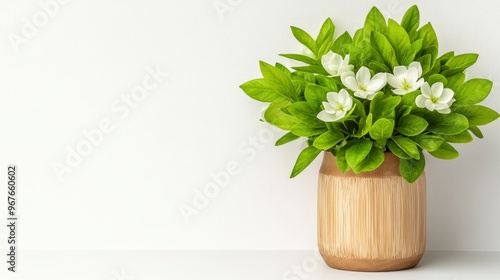 white flower, white background, floral arrangement, greenery, plant, foliage, home decor, interior design, minimalist, simple, elegant, natural, fresh, beauty, spring, summer, nature, bloom, blossoming, white, wood, texture, vase, pot, decoration, still life, copy space, blank space, botanical, floral arrangement, floral, green, leaf, flower petals, bud, blossom, light, bright