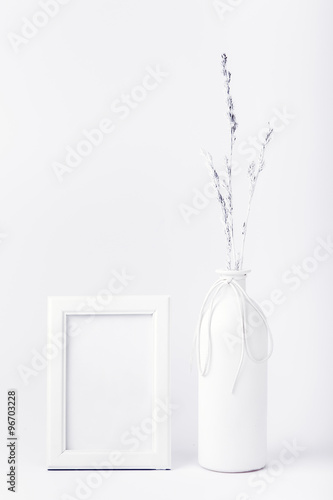 White frame with a bottle on a white background