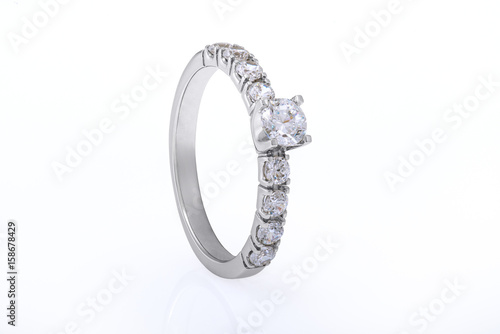 White Gold Wedding, Engagement Ring with Diamonds on White Background