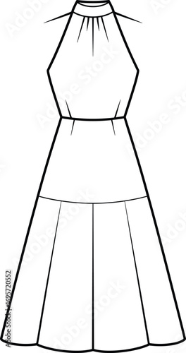 White Halter Neck Dress With Pleated Skirt And Cinched Waist vector illustration