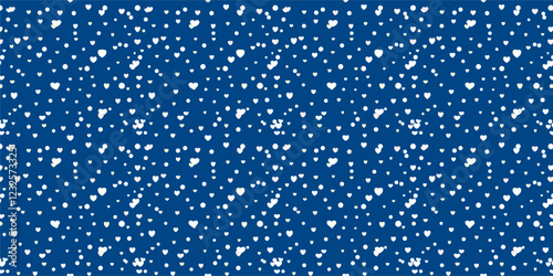 White Heart Seamless Pattern on blue Background. Love romantic theme. Pattern hearts with Love for Valentine's Day. Valentines day background. Vector abstract texture with small hearts