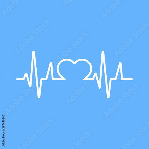 White heartbeat line, medical line isolated on blue background. Can be used for many purposes, website, app UI, editable EPS Vector