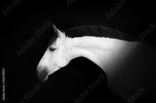 white horse portrait on black background studio
