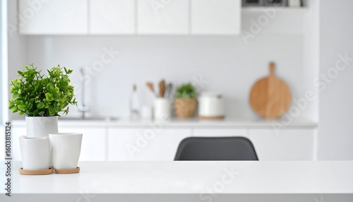 kitchen, white, interior, home, modern, design, decor, clean, minimalist, empty, background, space, table, countertop, plant, cup, mug, utensil, cooking, food, wooden, board, bright, light, style, lifestyle, room, contemporary, furniture, indoor, nobody, detail, blurred, sharpened, natural, setting, cosy, creative, payment, abstract, health, people, professional