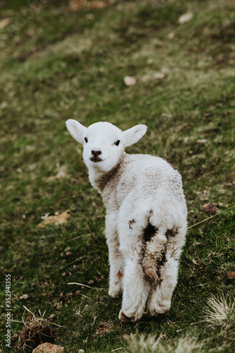 lamb, sheep, animal, farm, spring, grass, cute, lamb, young, baby, field, wool, white, green, animal, agriculture, farming, nature, farm animal, meadow, mammal, little, 2, springtime, countryside, scotland, beautiful
