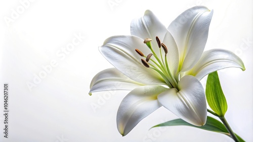 white lily, flower, isolated, white background, low angle