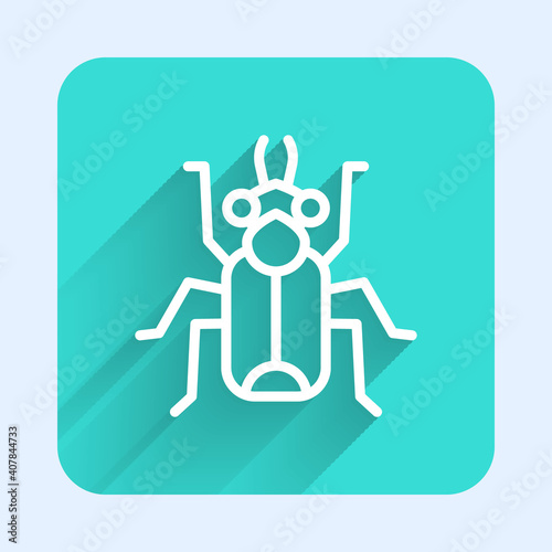 White line Beetle bug icon isolated with long shadow. Green square button. Vector.