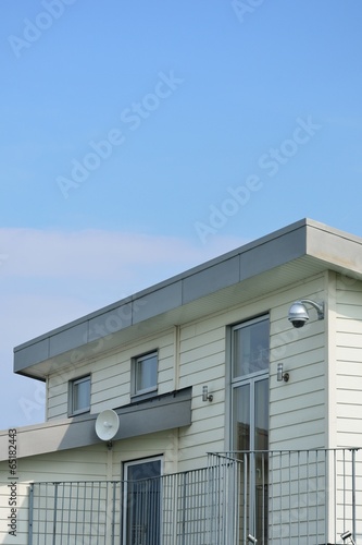 White modern coastal house in close-up