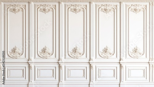 White ornate wall paneling interior background