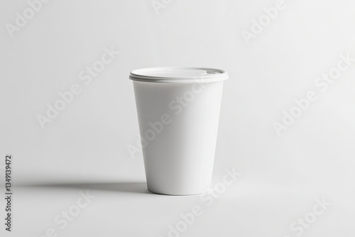 White Paper Cup with Lid Mockup on Light Background Studio Shot