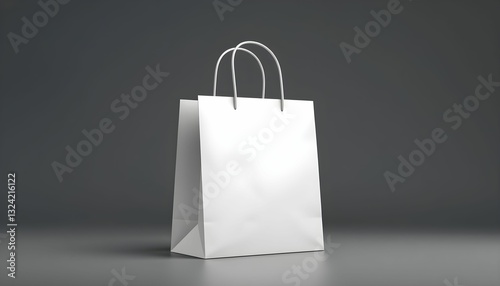 white paper shopping bag, minimalist, clean design, studio lighting, high contrast, single object, simplicity, shadow, textured background, 3D render, product photography, elegant