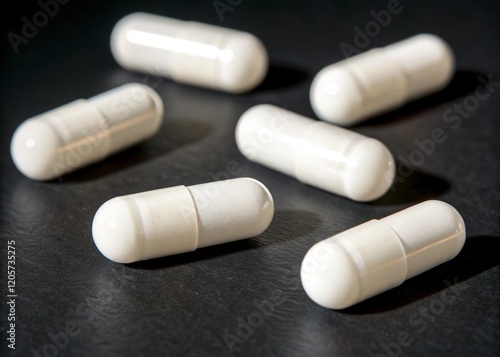 White pills on black background.