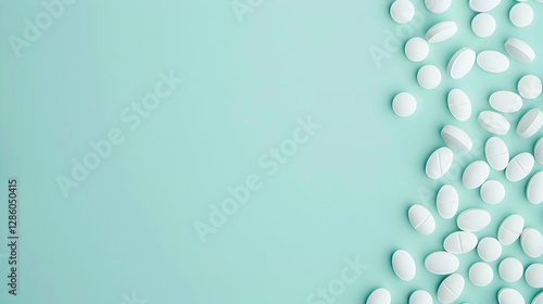 pill, medication, health, wellness, pharmacy, blue, background, clean, calm, aesthetic, medicine, treatment, therapy, prescription, health care, pharmaceutical, vitamin, supplement, round, tablet, white, clinical, hygiene, lifestyle, healthful, drug, remedy, dosage, professional, care, safe, essential, therapeutic, cleanliness, modern, minimal, design, flat, surface, composition, still life, visual, beauty, simplicity, arrangement, concept