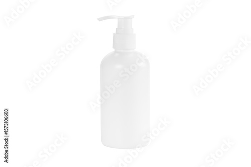 White plastic cosmetic pump bottle mockup for soap, lotion, or shampoo packaging. Blank skincare product dispenser template. isolated on white background with clipping path.