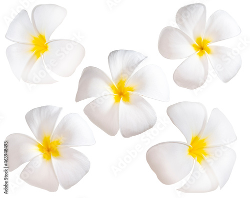 White plumeria flowers isolated on White background, Frangipani flower isolated white background With clipping path.
