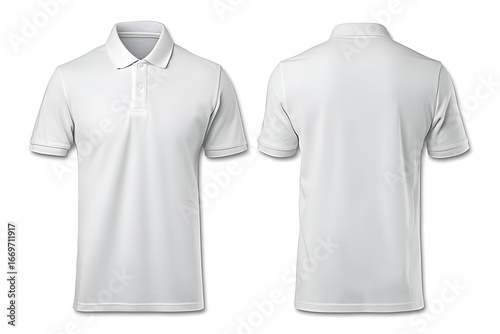 White polo shirts mockup front and back used as design template, isolated on white background with clipping path.