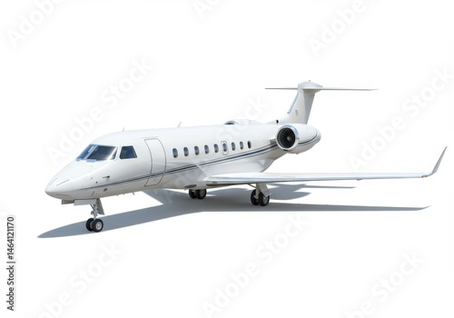 White private jet airplane isolated on a white background, showcasing its sleek design and luxurious features
