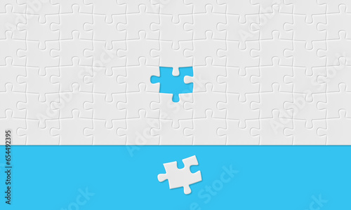 White puzzle with a dropped element isolated on a blue background. Pattern. Illustration