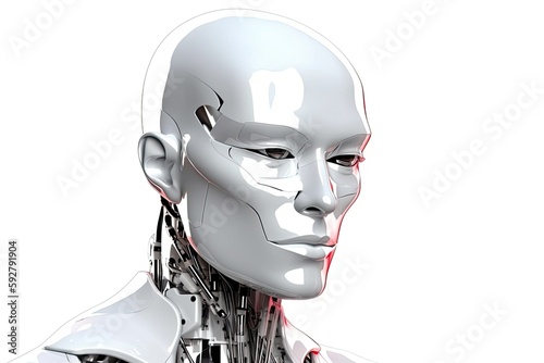 generative, ai, robot, chain, captivity, oppression, technology, artificial intelligence, science fiction, future, machine, mechanical, white, metal, futuristic, digital artwork, symbolism, metaphor, control, domination, power, rebellion, uprising