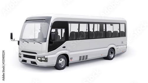 White Small bus for urban and suburban for travel. Car with empty body for design and advertising. 3d illustration