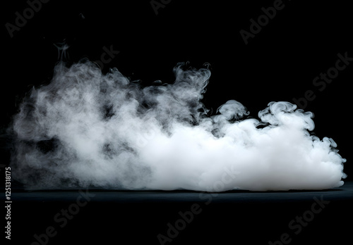 White smoke on a black background, smoke in the air, a white cloud of vapor from a vape or e-cigarette.