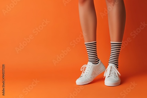 leg, sneaker, sock, white, striped, fashion, casual attire, footwear, orange, style, woman, trendy, outfit, comfortable, sport, young, modern, lifestyle, summer, playful, accessory, studio, closeup, vibrant, chic, athletic, design, colours, pattern, casual clothes, youth, fun, minimalistic, bright, cheerful, relaxed, urban, fresh, simple, stylish, fashionable, active, leisure, sporty, elegance, contemporary, unique, eye-catching