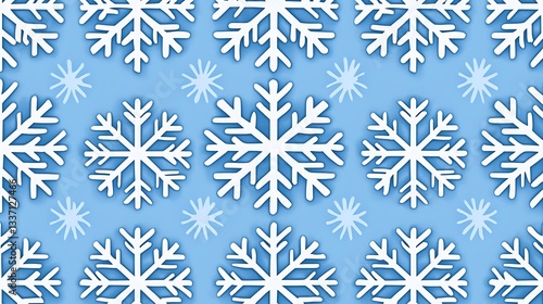 White snowflakes on blue background, creating a winter pattern for seasonal designs