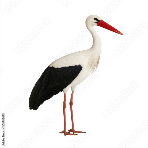 stork, bird, white stork, wildlife, animal, nature, avian, feather, wing, beak, leg, long neck, black-and-white, isolated, white background, closeup, wild bird, ornithology, zoology, beautiful, elegant, graceful, serene, calm, peaceful, wild, free, natural, fauna, avifauna, water bird, migratory bird, large bird, long legs, half face, full body