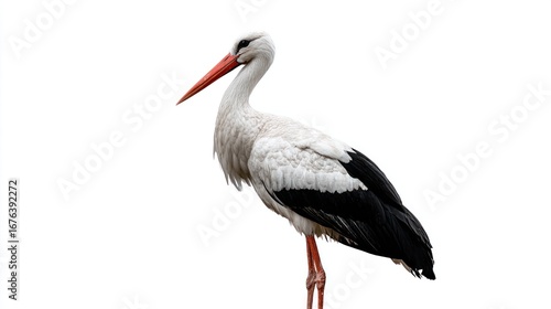 stork, bird, white, black, profile, red, beak, long, leg, feather, wildlife, nature, animal, elegant, graceful, standing, closeup, detail, wing, plumage, white bird, portrait, avian, species, vertebrate, ornithology, birding, zoology, fauna, environment, birdlife, conservation