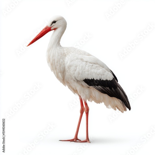 stork, bird, white, black, red, beak, wing, wildlife, animal, nature, avian, feather, plumage, profile, isolated, background, closeup, detailed, ornithology, zoology, fauna, photo, long, neck, leg, elegant, graceful, standing, single, wild, scene, clean, studio, shot, high, quality, sharp, clear, crisp, bright, pure, contrast, beautiful, iconic, symbol, kingdom, ornithological, zoological