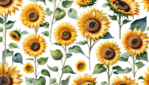 white sunflower background set beautiful garden summer watercolor flower illustration pattern sun botanical art water bright vintage drawing painting gold colours artistic yellow natural colourful