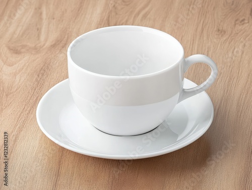 teacup, saucer, white, porcelain, ceramic, tableware, drink, tea, hot drink, beverage, hot drink, kitchen, dining, table setting, home, cafes, eatery, wood, wooden table, simple, minimal, clean, elegant, modern, blank, empty