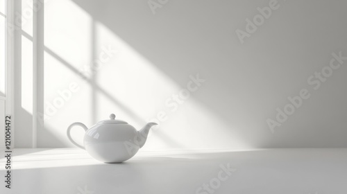 teapot, white, room, sunlight, minimalist, interior, calm, scene, banner, website, tea, kettle, ceramic, porcelain, home, house, kitchen, still, life, bright, light, elegant, simple, clean, modern, design, background, space, empty, table, window, shadow, peaceful, serenity, relaxing, comfort, aesthetic, pure, decor, style, art, image, photo, picture
