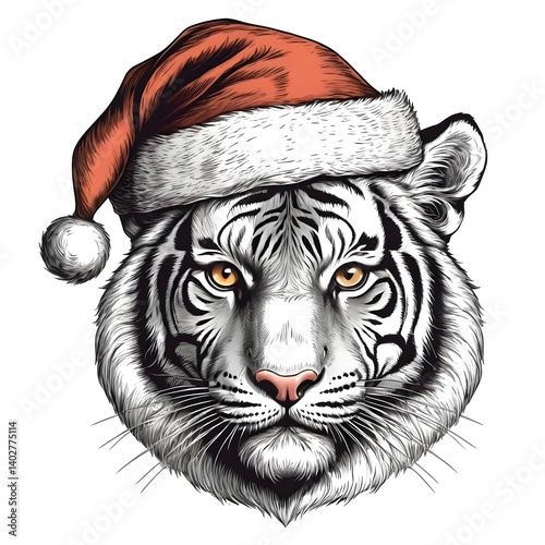 white tiger, tiger, christmas, winter, holiday, animal, wildlife, big cat, felino, predator, portrait, head, face, majestic, wild, nature, festive, celebration, new year, december, holiday, season, fauna, christmas, drawing, detailed, realistic