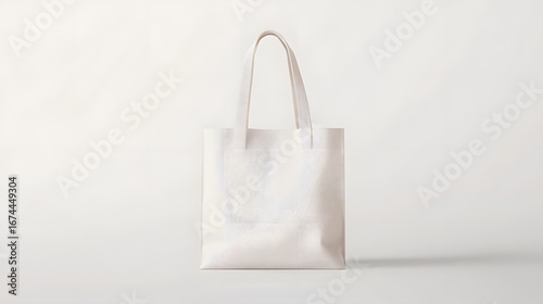White tote bag mockup on plain background. Simple design template for branding. Blank textile bag