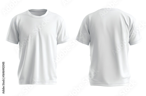 White T-shirt template, front and back, isolated on a white background. Detailed photo,