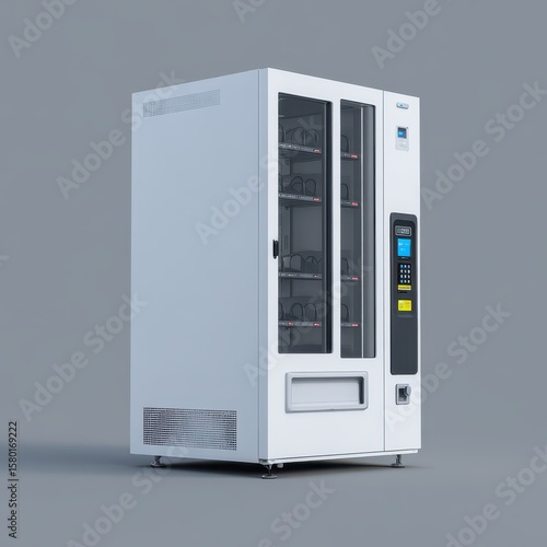 vending, machine, white, automated, digital, display, glasses, door, item, product, food, drink, retail, commerce, technology, modern, compact, efficient, convenient, portable, delivery, commercial, public, access, usage, payment, option, interface, panel, electronic, control, cabinet, storage, shelving, design, contemporary, functional, equipment, innovation, solution, product, future, investment
