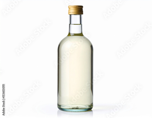 White Vinegar in Clear Glass Bottle on White Background for Kitchen or Product Display