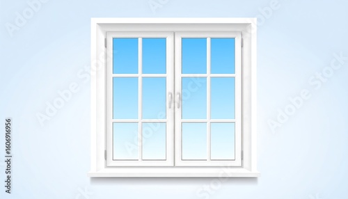 window, white, blue, sky, frame, glasses, pane, double, door, light, clean, simple, modern, realistic, illustration, design, exterior, home, architecture, building, view, bright, open, perspective, empty, rectangular, daylight, detail, depth, horizontal, clear, image, graphic, background, detail