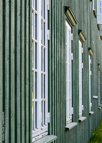 White wooden windows and green walls in Norway