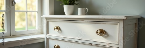 brass, space, aesthetic, dresser, home, wood, detail, elegant, handle, window, painted, simple, sun, style, bedchamber, furniture, sunlight, scandinavian, nordic, clean, white, modern, storage, daylight, bright, room, shadow, decor, interior, minimalist, drawer, light