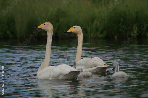 Whooper swan (Cygnus cygnus), also known as the common swan captured in the North of Belarus