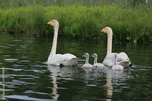 Whooper swan (Cygnus cygnus), also known as the common swan captured in the North of Belarus