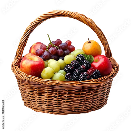 Wicker Basket with Fresh Fruit isolated on transparent background