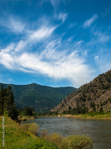 Wide Mountain River Cuts a Valley - Clark Fork River Montana USA
