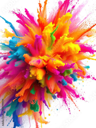 Wide panorama of colorful rainbow holi paint color powder explosion on white background, powdery substance, rainbow powders, vibrant paints, colorful mess, bright colors