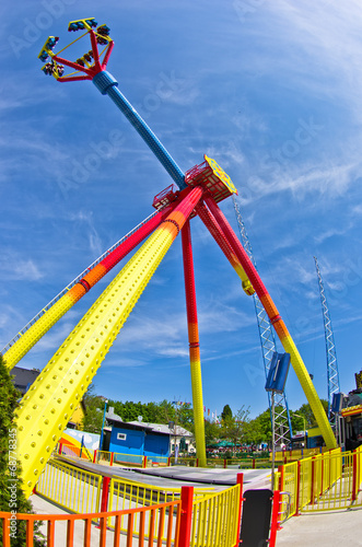 Wide view of a colorful swings in Prater amusement park, Vienna