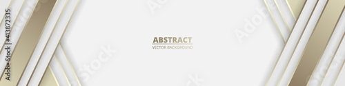 Wide white abstract luxury background with golden lines and shadows. Light modern wide banner with golden luminous lines. Futuristic abstract backdrop. Vector illustration EPS 10.