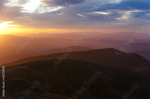 Widok z Babiej Góry o zachodzie słońca