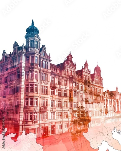 Wiesbaden Skyline Map Double Exposure Composite Art Poster - A building with many windows
